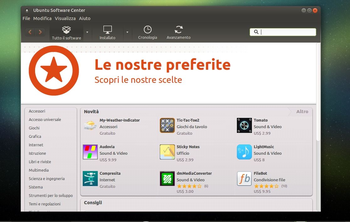 Gli sviluppatori di Ubuntu MATE hanno già indicato che non sarà Synaptic a prendere il posto di Ubuntu Software Center, una soluzione potrebbe arrivare da App Grid, software center grafico che include caratteristiche molto simili ad USC ma risulta molto più leggero, reattivo e con un’interfaccia grafica molto ben integrata anche con Mate (ricordo che è un’ipotesi nulla di confermato).