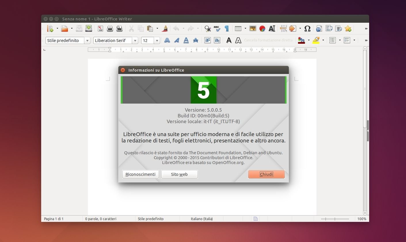 Per Ubuntu e derivate è possibile installare LibreOffice 5.0 attraverso i PPA dedicati digitando da terminale: