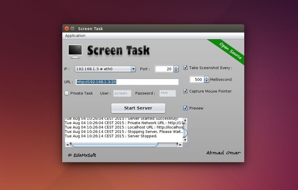 Utilizzare ScreenTask è semplicissimo, basta avviarlo nel pc / desktop da condividere, inserire eventuale login d’accesso, visualizzazione del mouse, porta ecc e avviare la condivisione. ScreenTask ci indicherà l’url da condividere con il quale gli altri utenti potranno accedere al nostro desktop.