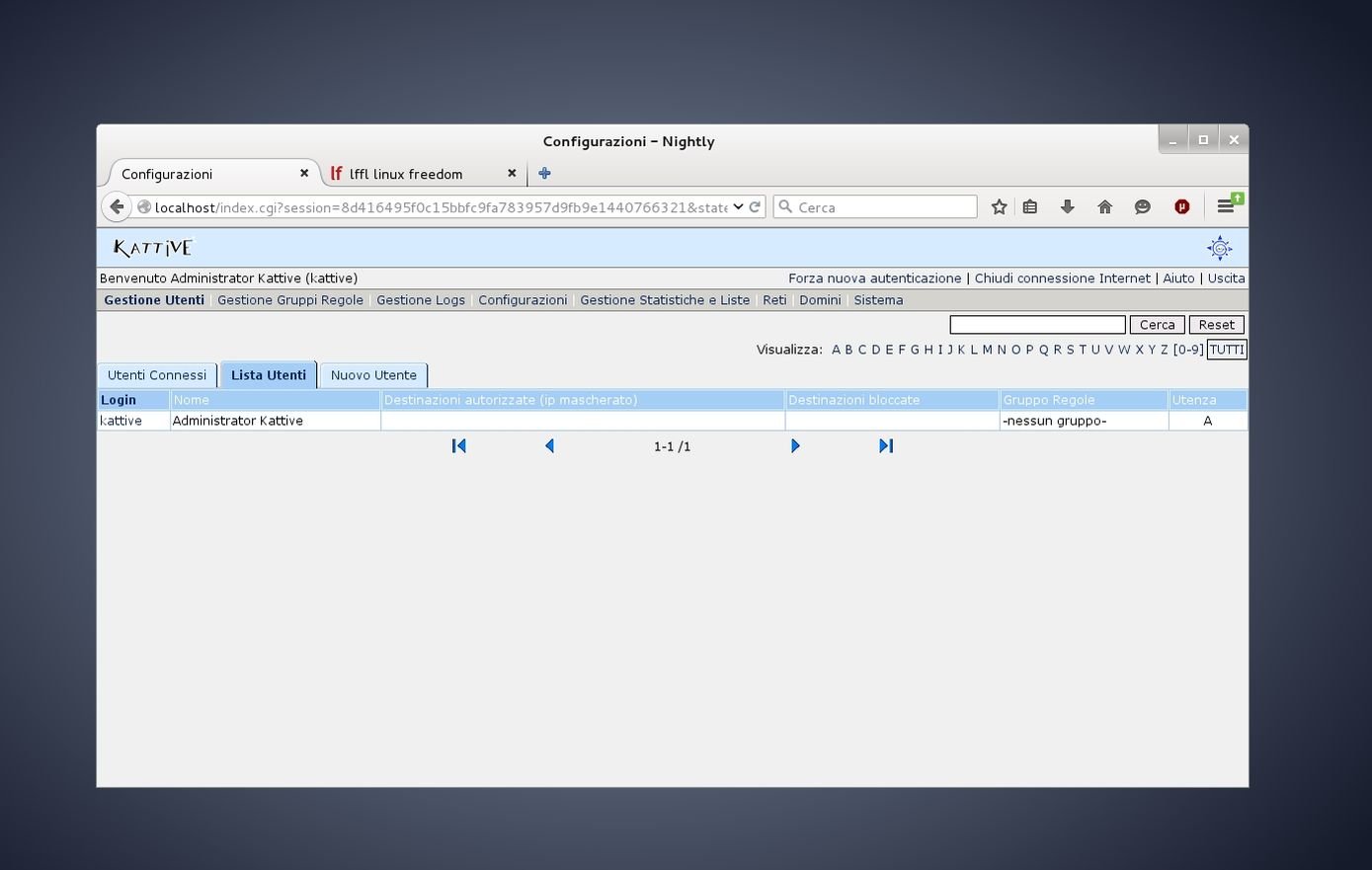 KATTIVE è un firewall dinamico con il quale potremo gestire al meglio gli accessi ad internet attraverso una semplice ed intuitiva interfaccia web. Grazie a KATTIVE potremo ad esempio gestire utenti e regole, monitorare i vari accessi e molto altro ancora il tutto per garantire una maggiore sicurezza e privacy.
