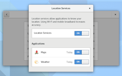 Con Gnome 3.20 è stato fornito agli utenti un maggiore controllo sui servizi di localizzazione. Finora l’unica azione possibile era abilitare/disabilitare questi servizi, adesso invece è possibile scegliere se e quali abilitare da un pannello apposito.