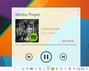 Novità anche per il media player, che ora, tramite un movimento del cursore sopra il relativo bottone nella task bar, permette di vedere la cover dell’album, di cambiare canzone o di fermare la riproduzione, anche su Spotify per Linux.