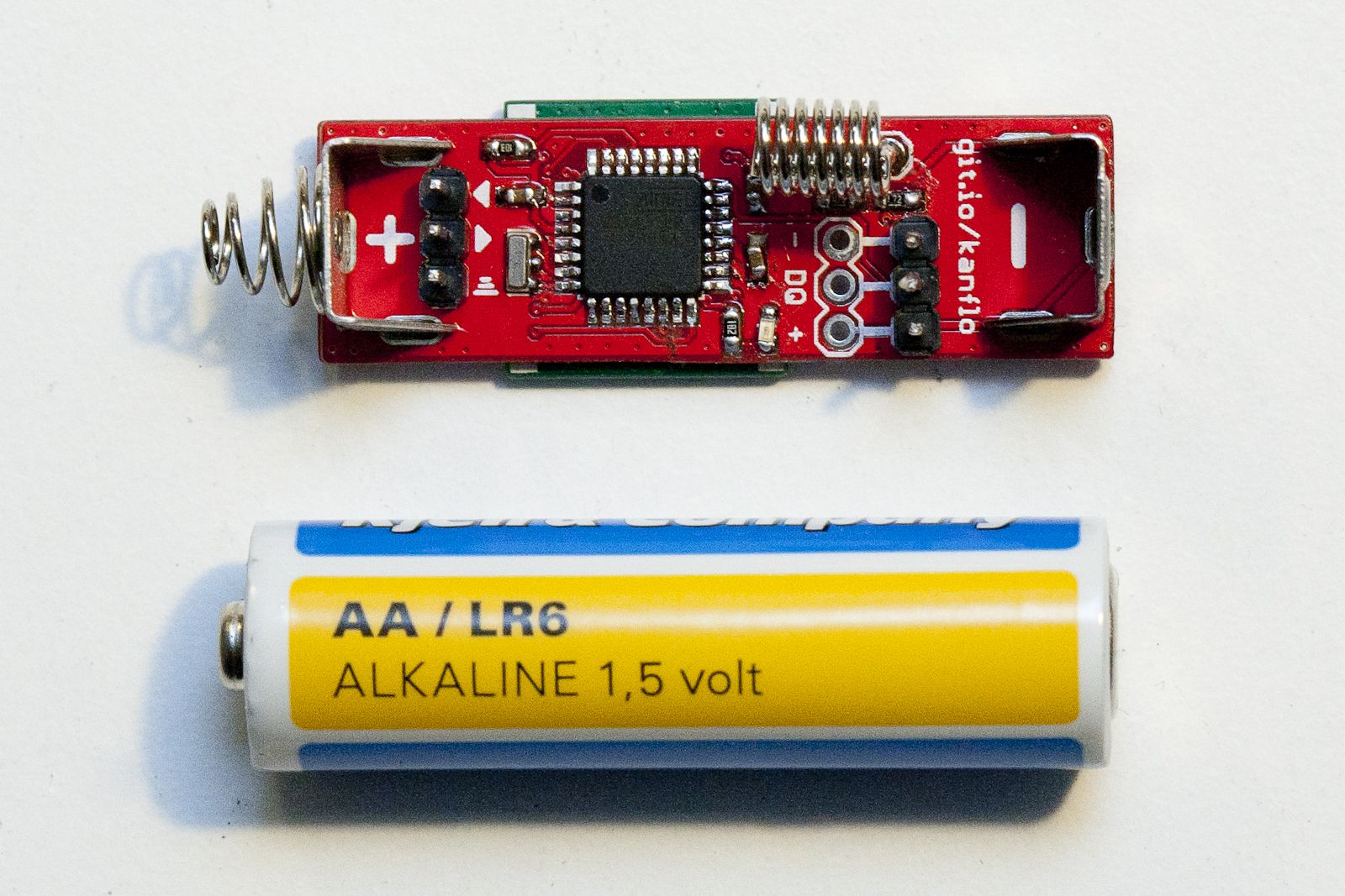 Volendo esplorare meglio le sue caratteristiche, sappiamo che AAduino è basato su un altro clone, decisamente più noto, del progetto originale, la scheda Tiny328: già molto piccola di per sé e composta dal micro-controllore ATmega328 (lievemente downclockato), dalla ricetrasmittente RFM12B e dal sensore wireless TinyTX.