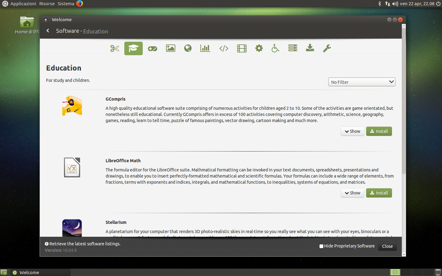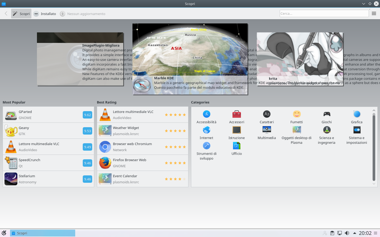 Il software center sembra soffrire di un bug che estende le scritte ben oltre il loro spazio dedicato, ma sembra essere presente solo nella pagina iniziale; la ricerca di software e l’installazione funzionano come ci si aspetta.