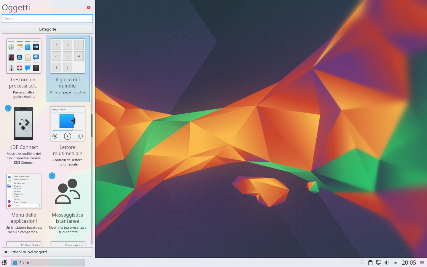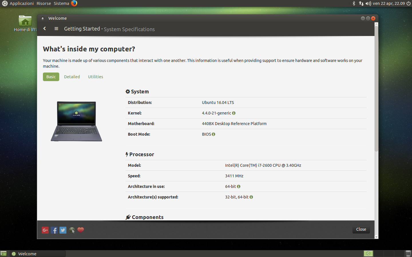 Plasma 5.5 (che è un grande cambiamento rispetto alla versione presente nella LTS precedente, la 14.04) è un ottimo ambiente desktop, bello da vedere, completo di servizi e altamente personalizzabile. Tutto questo però ha un prezzo in termini di prestazioni: anche appena installato, il sistema utilizza poco meno di 1GiB di RAM, che è destinato a crescere con l’utilizzo di eventuali widget.