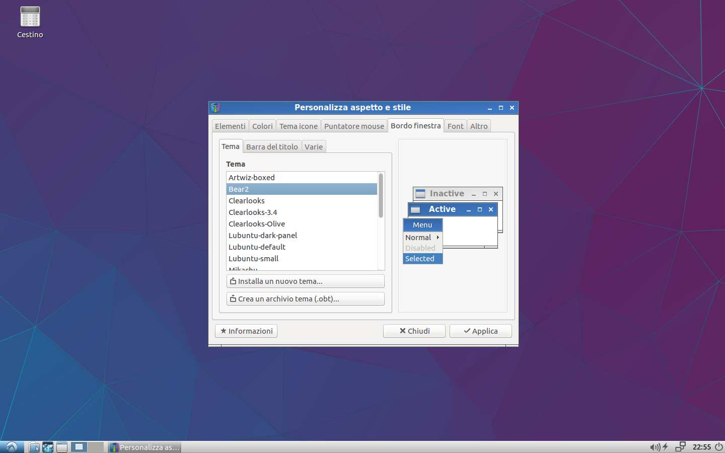 Come è tipico di Xfce, le opzioni di personalizzazione sono vaste e facili da usare, con pannelli completamente configurabili e per nulla necessari nel caso non si volessero: con un click destro sul desktop si può accedere a tutti i menu che si possono desiderare. Essendo basato su GTK, ottenere temi alternativi già pronti creati da altri utenti è molto facile, basta effettuare una semplice ricerca online. In una decina di minuti sono riuscito a ottenere un aspetto piuttosto diverso dall’originale, e chi ha tempo di farlo avrà la possibilità di sbizzarrisi ulteriormente fino ad ottenere la propria esperienza ideale.