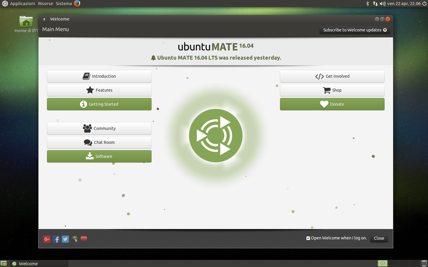 Durante l’installazione nulla di nuovo, si tratta ancora una volta dello stesso installer di Ubuntu e Xubuntu. La vera novità arriva al primo avvio: unica tra le derivate ufficiali di Ubuntu, Ubuntu Mate fornisce un “Welcome Screen” che permette di configurare il proprio sistema con facilità da un’interfaccia unificata che include anche il software center.