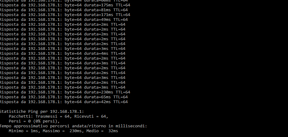 Come potete voi stessi notare, il segnale WiFi risulta essere instabile, facendo alzare inspiegabilmente i tempi di latenza di diversi millisecondi anche a brevi distanze.