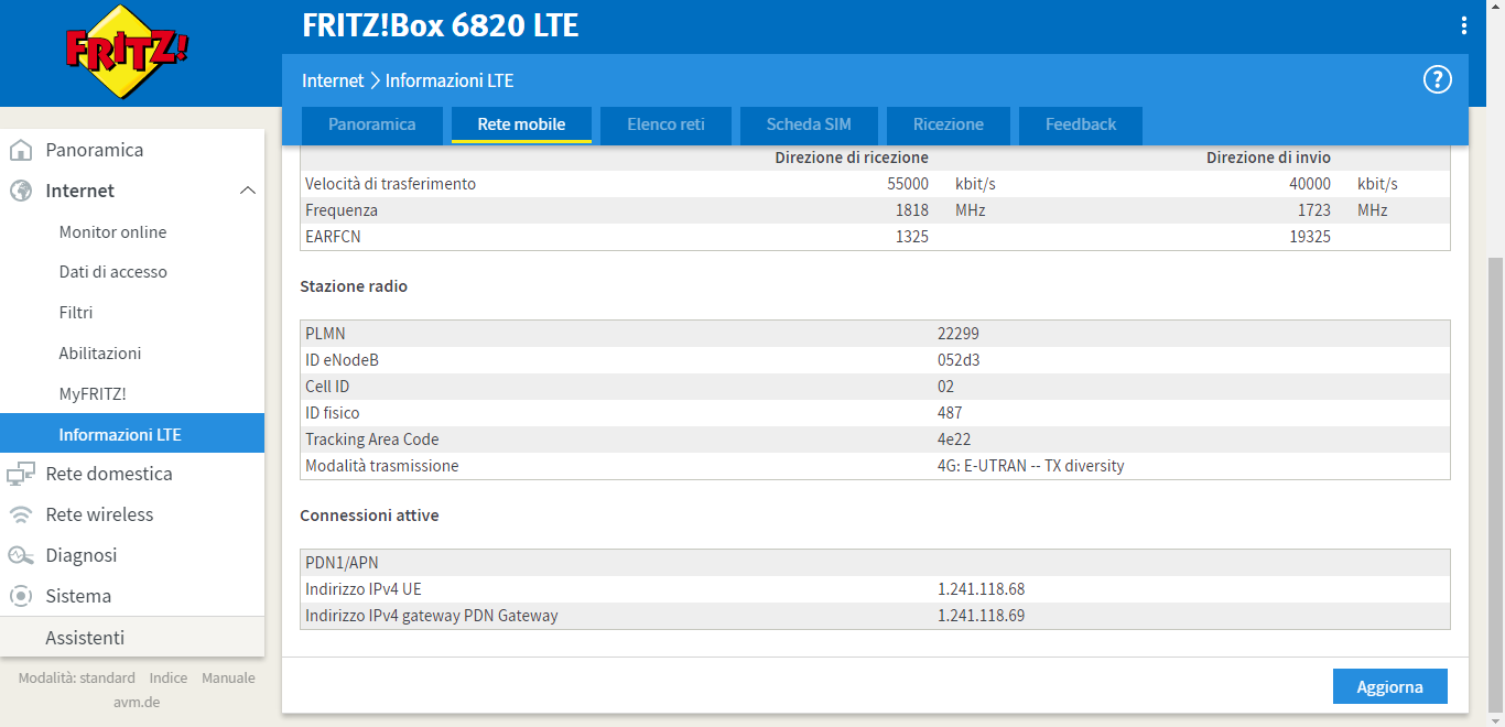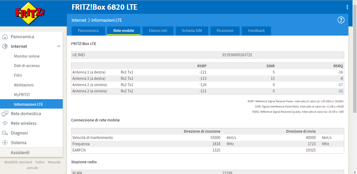 Non mancano molti dettagli relativi alla connessione in atto, alla ricezione del segnale, al transfer rate e tanti altri dati specifici destinati agli smanettoni del mondo delle telecomunicazioni.