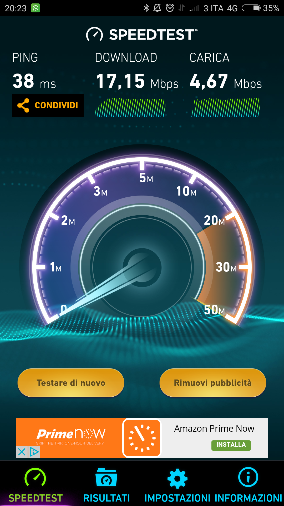 Da segnalare che ho preferito eseguire il test indoor e nella stessa posizione del mio smartphone, in maniera tale da determinare la capacità di ricezione del router.