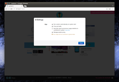 E’ però importante menzionare che Lantern non è stata creata per essere un “anonymity tool“, per quello esiste Tor. L’obbiettivo di Lantern è fornire un modo facile, veloce e sicuro per accedere ai siti bloccati.