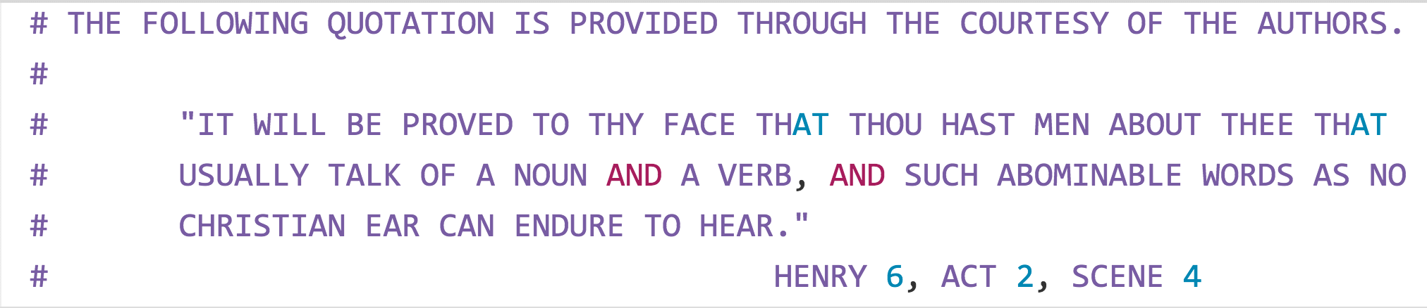 La maggior parte dei commenti del codice va al di là della noiosa spiegazione del programma. Sono infatti caratterizzati da battute, messaggi e riferimenti ai costumi dell’epoca.
