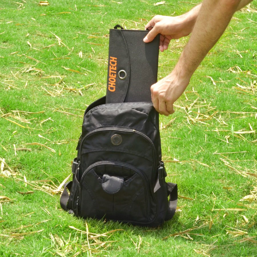 Il caricabatterie solare di Choetech è abbastanza compatto una volta chiuso, comodo da portare con sè in uno zaino. Il materiale comunica solidità e robustezza al tatto, inoltre è resistente all’acqua. Il peso è irrilevante, solo quattro etti. L’output invece è veramente ottimo: in condizioni di massimo soleggiamento, questo dispositivo riesce tranquillamente a ricaricare due telefoni/tablet contemporaneamente. In una tasca interna, che puo’ essere chiusa grazie ad una comoda cerniera, è situato uno box con due porte USB alle quali andrete a collegare i vostri device.