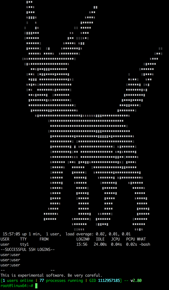 Dopo essersi infiltrato nel vostro pc Umbreon crea un account utente fittizio che gli hacker usano per accedere al device via SSH. Questa la home screen che viene mostrata quando il virus vi ha colpito: