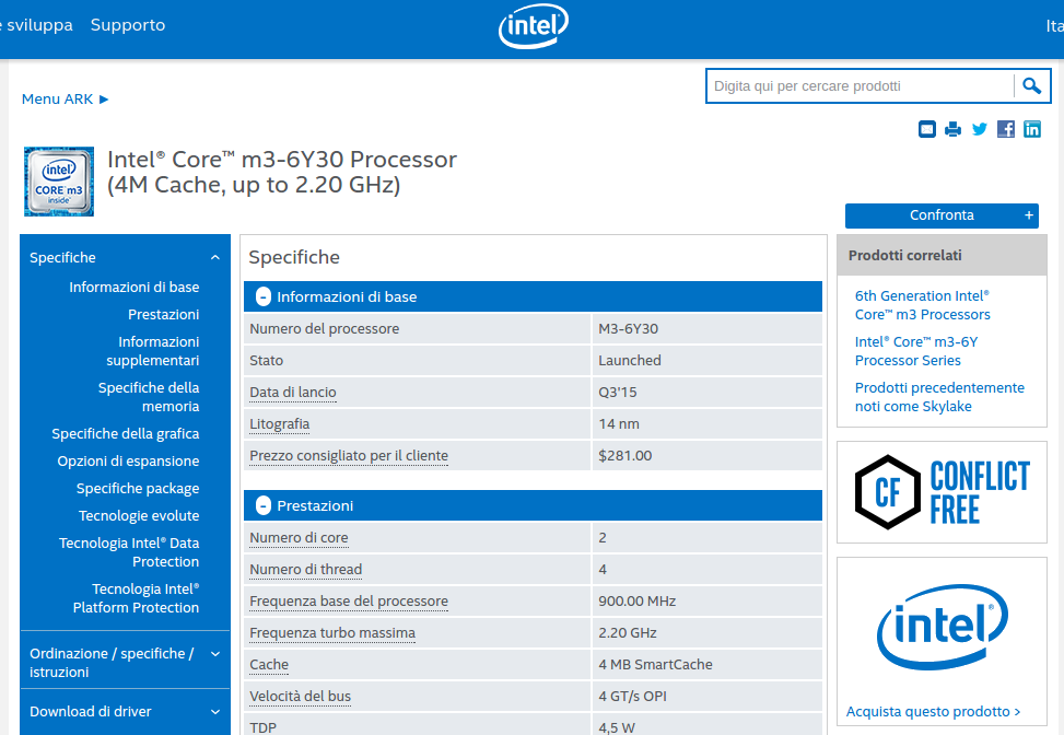 Partiamo subito con le specifiche tecniche del device, che prevedono un processore Intel Core M3-6Y30, soluzione di base della famiglia di processori a basso consumo di Intel con architettura SkyLake di sesta generazione e realizzata a 14 nanometri.