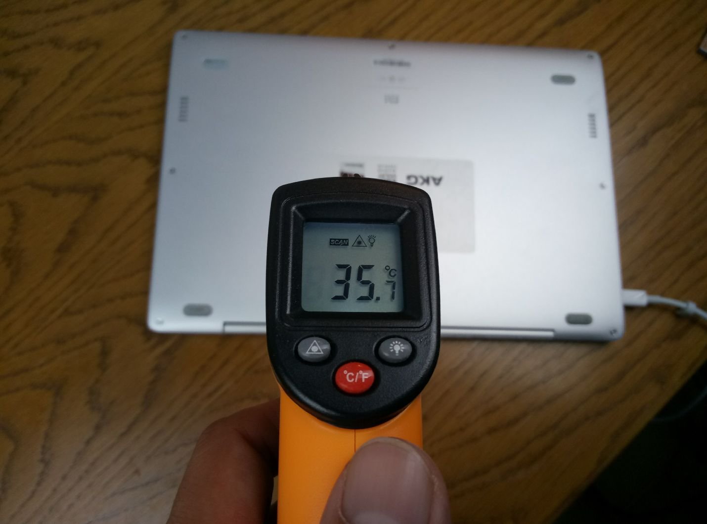 La scocca, invece, ha raggiunto un valore massimo nella parte alta della tastiera pari a 37° C sotto sforzo, mentre nella parte posteriore ho misurato 36° di massima, un valore che da appena fastidio solo se usate il notebook sulle vostre ginocchia per un lungo periodo di tempo. In compenso l’area del poggia-polsi rimane abbastanza fresca o al più tiepida, mentre tende a scaldarsi significativamente durante la ricarica del dispositivo.