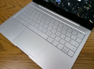 Inutile dire che il design riprende significativamente le linee estetiche dei recenti MacBook di Apple, complice anche la colorazione del metallo adottata. Nonostante ciò, la socca è completamente realizzata in metallo e restituisce un buon feedback all’utente, anche se di contro però quest’ultima tende a sporcarsi facilmente e a trattenere le impronte, indice del trattamento oleofobico applicato poco efficace.