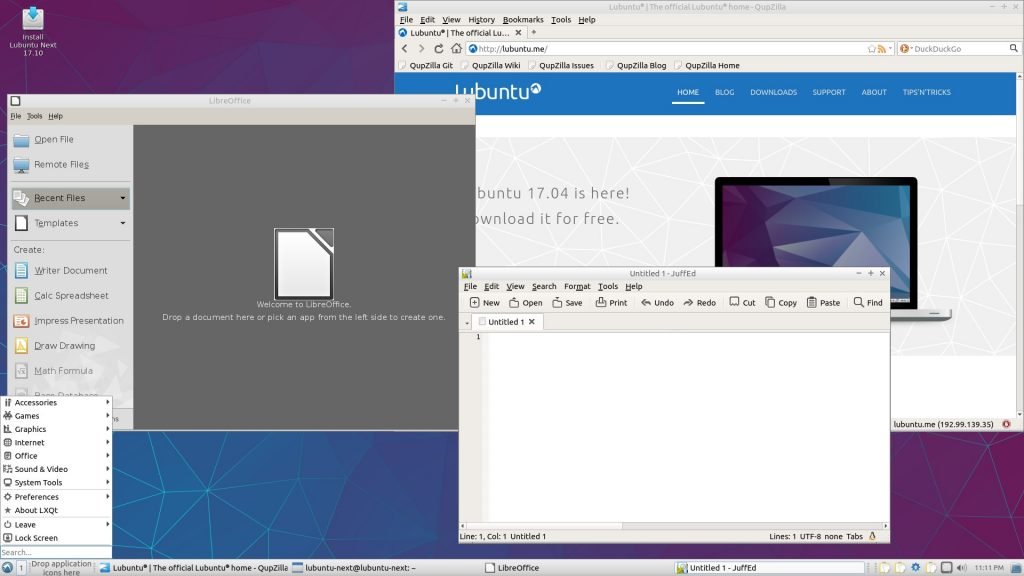 Lo screenshot sopra è preso dalla Daily Build 20170524.2 di Lubuntu 17.10 con LXQT 0.11.1. Attualmente vi sconsiglio di procedere col testing perchè ci sono ancora diversi problemi che presto verranno risolti. Sul mio pc ho provato a lanciare la build in macchina virtuale e i problemi sono parecchi (a partire dal boot).