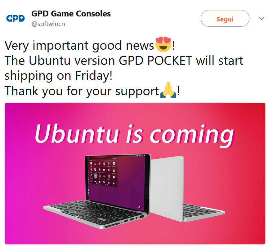 “And we are start to ship the Ubuntu version GPD Pocket now, and will keep report the tracking information. Much appreciated for all your great support and patience for us.”