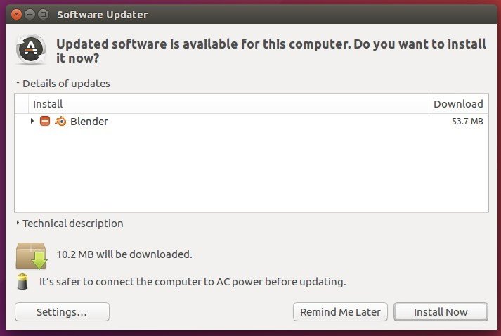 E’ possibile installare Blender via Snap. Per farlo su Ubuntu 14.04 è necessario installare snapd se non lo avete: