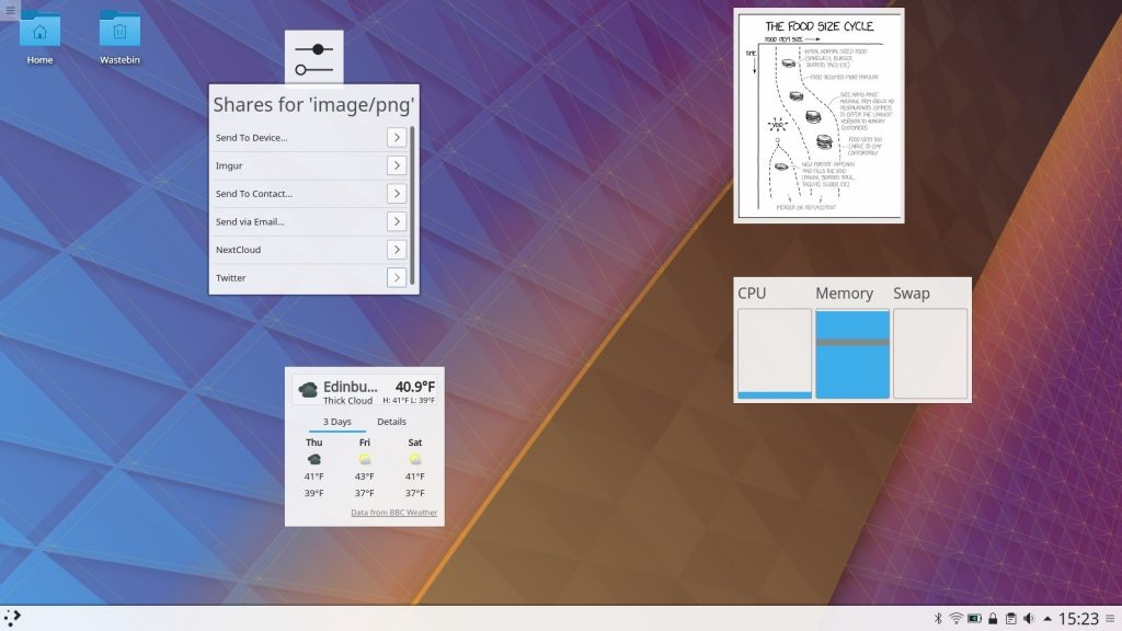 Altre funzioni interessanti: desktop widgets, un look unificato per il tema di default Breeze, integrazione con lo smartphone via KDE Connect e nuove possibilità di personalizzazione.