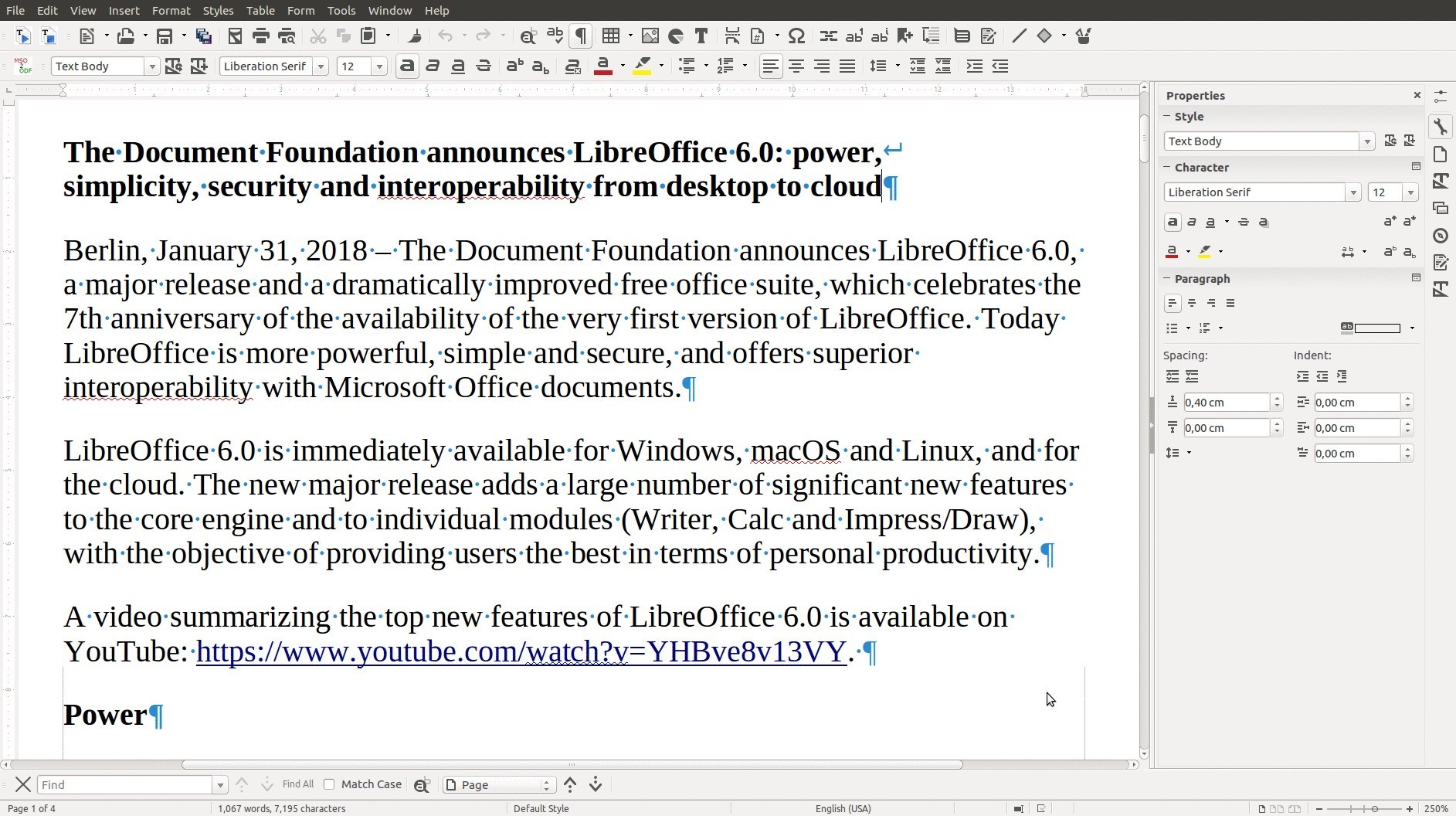 Lo scorso 31 Gennaio la TDF ha rilasciato LibreOffice 6.0. La nuova versione aggiunge un gran numero di nuove e importanti funzionalità sia al motore che ai singoli moduli (Writer, Calc e Impress/Draw), con l’obiettivo di offrire agli utenti il meglio in termini di produttività individuale.