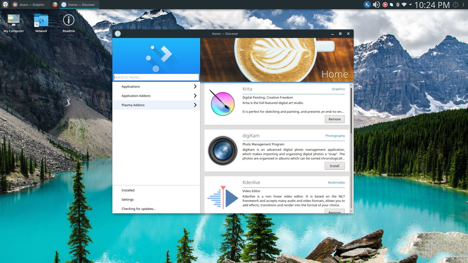 Sotto il cofano troviamo il kernel Linux 4.14. YaRock è il nuovo music player di default (vedi foto sopra) e KDE Plasma Discover è il nuovo graphical package manager. I Qt packages sono stati aggiornati alla release più recente. Sono presenti temi aggiornati, artwork e desktop tweaks.