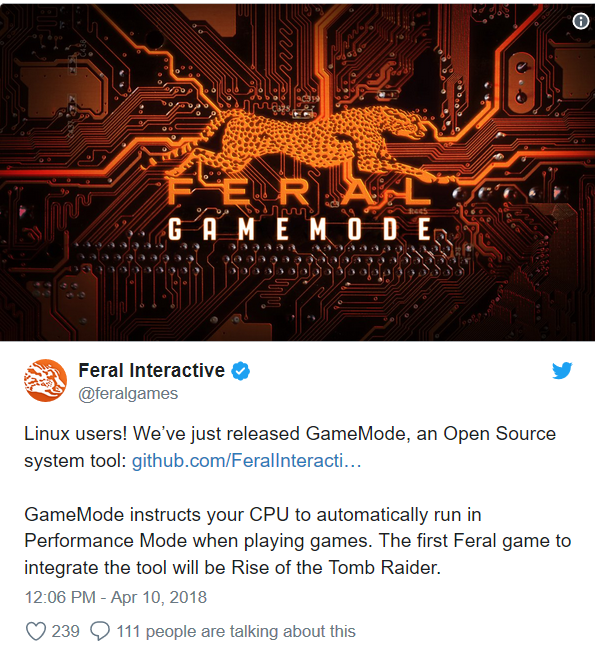 Feral Interactive ha rilasciato un tool open-source pensato appositamente per i videogiocatori. Il tool si chiama GameMode e come si evince dal nome promette di ottimizzare il pc garantendo le migliori prestazioni possibili. E’ stato sviluppato in collaborazione coi ragazzi di Solus.
