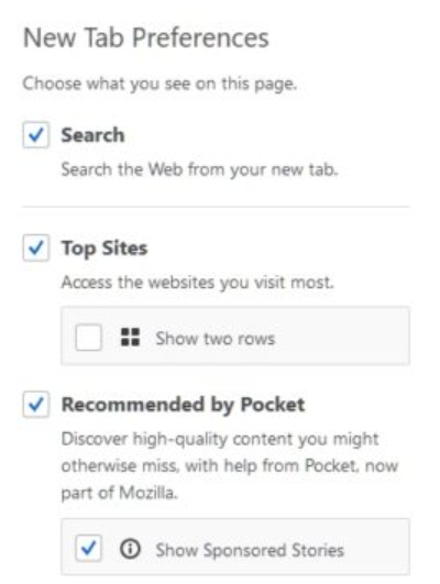 Questa notizia farà storcere il naso a molti, va dettò però che è possibile disattivare questi contenuti pubblicitari. Per farlo è necessario aprire una nuova scheda e deselezionare la voce “Show Sponsored Stories” attraverso le impostazioni della scheda stessa (vedi immagine sopra). Mantenere un buon equilibrio tra guadagni, personalizzazione e privacy non è affare da poco.