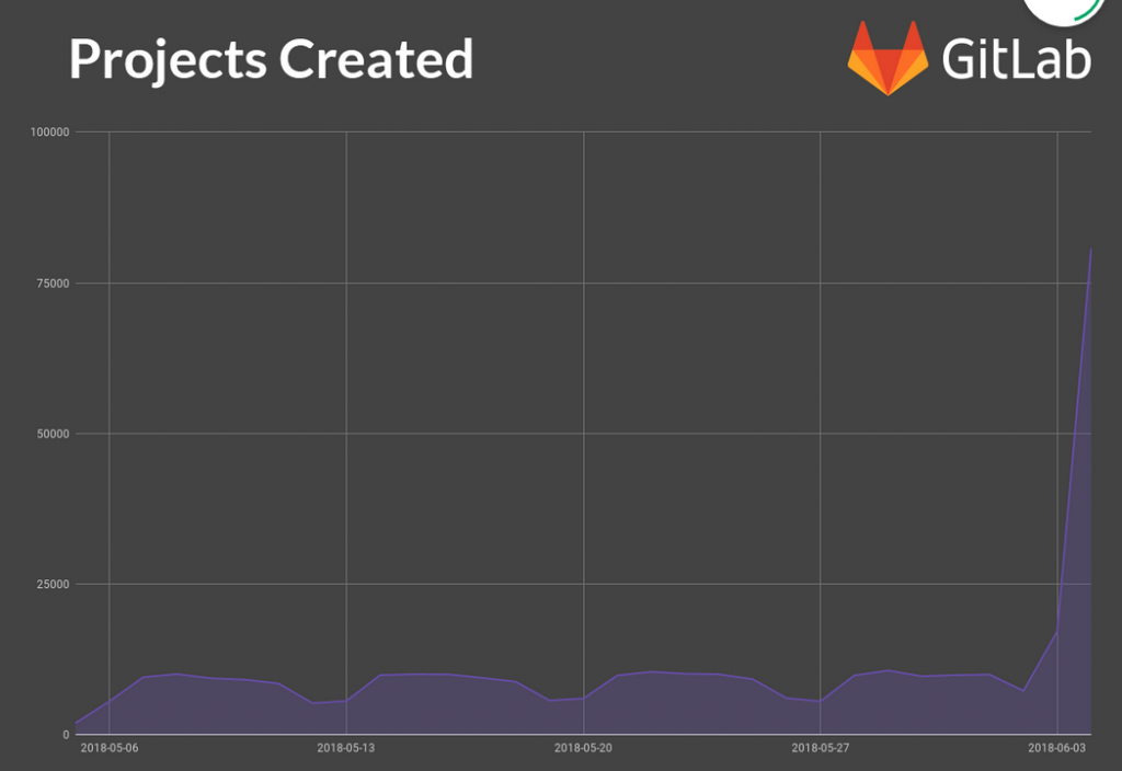 I rumours circa l’acquisizione di GitHub si susseguivano ormai da qualche giorno e questo ha comportato lo spostamento di migliaia di progetti da GitHub a GitLab. Potete osservare voi stessi il tracker in tempo reale. Solo Lunedì mattina sono stati importati 13,000 progetti in un’ora.