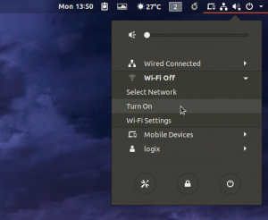 1_ Per creare un hotspot Wi-Fi la prima cosa da fare è abilitare il Wi-Fi (se non lo è già), dal System menu selezionate Wi-Fi Off > Turn On.
