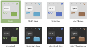 Il tema di sistema predefinito (Mint-Y) verrà aggiornato e avrà un contrasto migliorato oscurando i colori in primo piano e rendendo le etichette più facili da leggere, come richiesto dalla community. Saranno disponibili diverse colorazioni (vedi foto sotto).