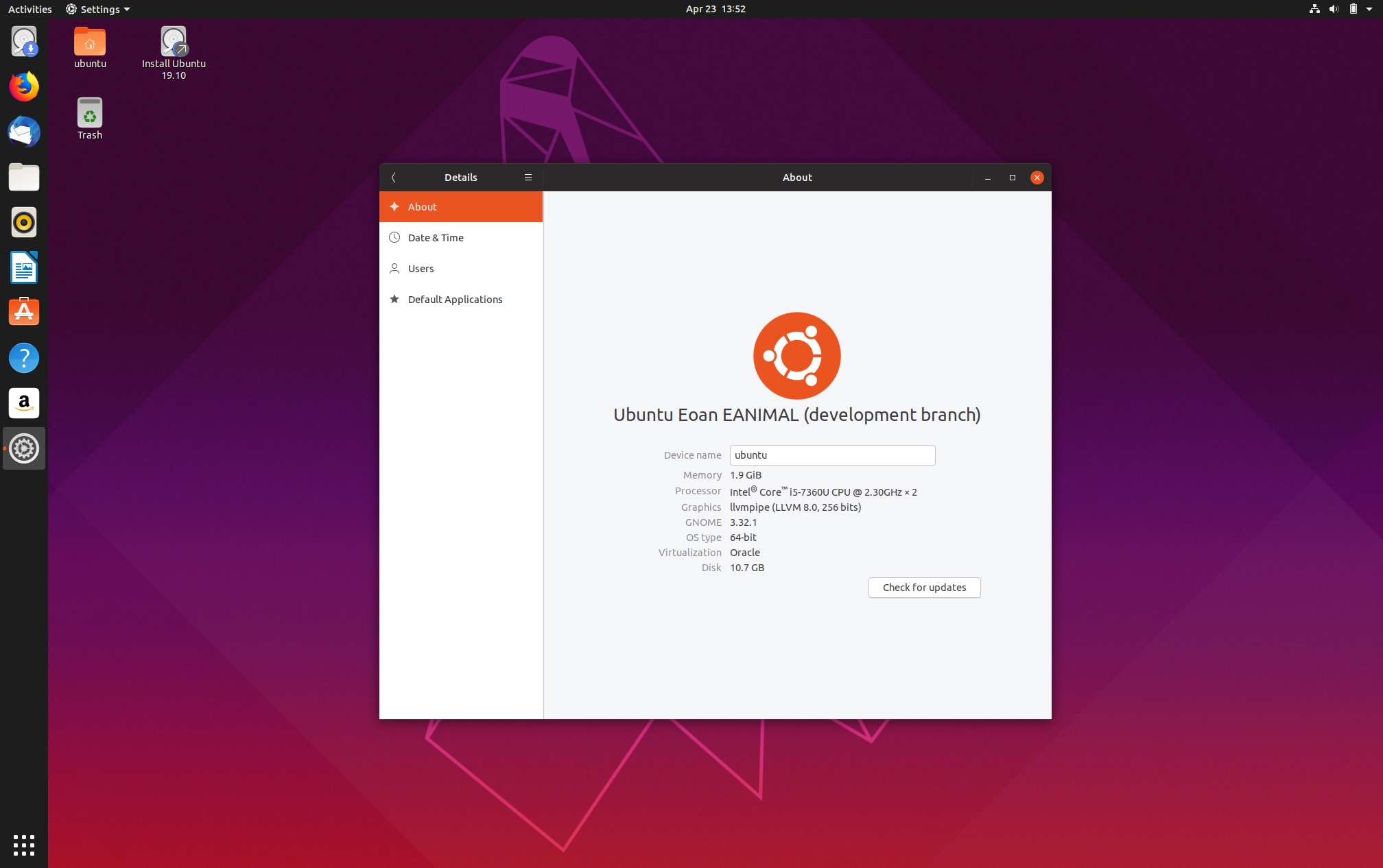 Chiaramente le novità in queste prime build sono pressochè nulle in quanto si basano ancora interamente su Ubuntu 19.04. A bordo troviamo infatti il kernel Linux 5.0 e GNOME 3.32. Sappiamo però con certezza che la final release di Ubuntu 19.10 avrà a bordo la prossima release di GNOME, GNOME 3.34, di cui vi ho già parlato in passato e che arriverà il prossimo 11 Settembre 2019.