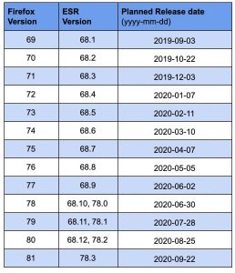 A partire dal primo trimestre 2020 la versione principale di Firefox sarà dunque aggiornata una volta al mese per rendere lo sviluppo più dinamico e consegnare tempestivamente agli utenti le novità. In aggiunta gli sviluppatori riceveranno più velocemente le nuove funzioni e le nuove Web API su cui lavorare.