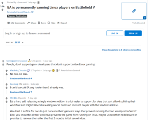 La discussione non si limita al solo Reddit: post simili sono emersi anche sui forum ufficiali di Battlefield e su Lutris. Chiaramente il numero di giocatori di Battlefield V che usano Linux è esiguo, ma questo non dovrebbe contare.