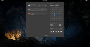 Gli sviluppatori hanno introdotto diverse migliorie dal punto di vista grafico e dell’aspetto in GNOME 3.36. Vi ho già mostrato i nuovi wallpaper ufficiali in questo articolo. Alcune di queste sono piccole modifiche difficili da notare mentre altre sono molto evidenti e balzano subito all’occhio. Appartiene a quest’ultima categoria la notification/calendar tray che è stata rivista e ora occupa meglio lo spazio a disposizione oltre a vantare un look tutto nuovo. Le notifiche hanno icone più grosse e un look più compatto e quando compaiono nella notification tray hanno lo stesso stile degli altri elementi della UI.