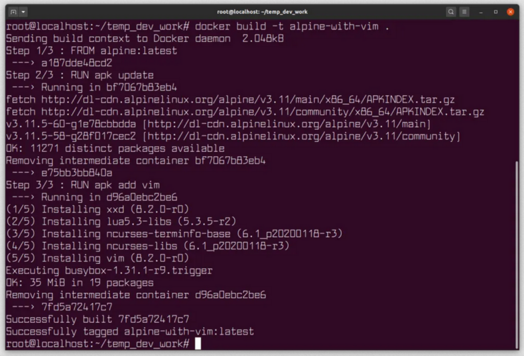 docker build -t alpine-vim . //alpine-vim è il nome custom, il punto è l'attuale directory