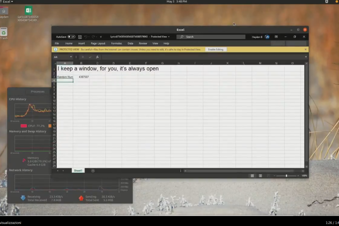 Sta usando un portatile con un Intel Core i5-6300U e grafica integrata. Come da lui stesso confermato è una soluzione nuova: non si tratta di Wine, né di app eseguita da remoto e nemmeno di WSL. Non ha svelato i dettagli ma ha fatto capire che ci sta lavorando e il tutto sembra veramente fluido. In un secondo video pubblicato il 3 maggio Barnes mostra Microsoft Excel all’opera su Ubuntu.