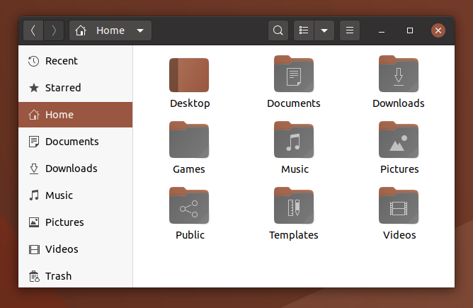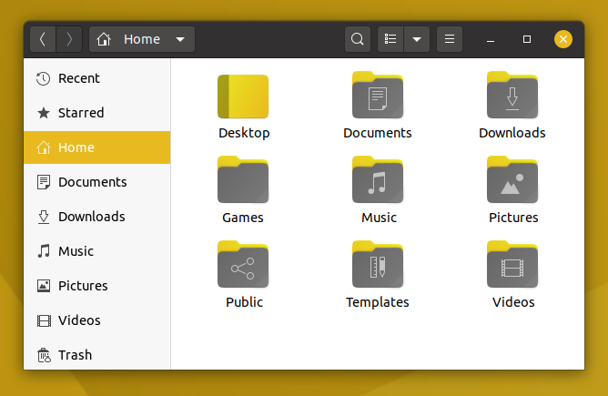 Ecco alcune immagini del File Manager Nautilus usando alcuni dei 12 colori disponibili in Yaru Colors: