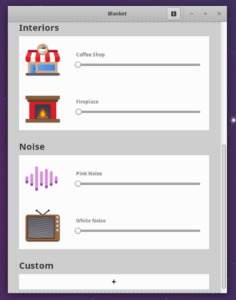 Blanket è un’applicazione open source, realizzata per distro GNU/Linux, che permette di riprodurre i rumori ambientali. Utilissima per quanti trovano difficoltà nel concentrarsi, magari perché disturbati dai familiari o dai vicini rumorosi, durante le sessioni di studio o lavorative (smart working)