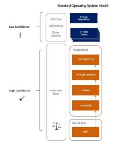Esiste, tuttavia, una tecnologia alternativa che fa un altro passo in avanti, in termini di efficacia, il trusted boot. Questo processo non solo misura gli hash, ma esegue anche un controllo rispetto ad un valore previsto. Se il controllo fallisce, il processo si interrompee l’avvio del sistema fallisce. Il trusted boot, quindi, dovrebbe impedire al sistema di eseguire firmware modificato accidentalmente o intenzionalmente.