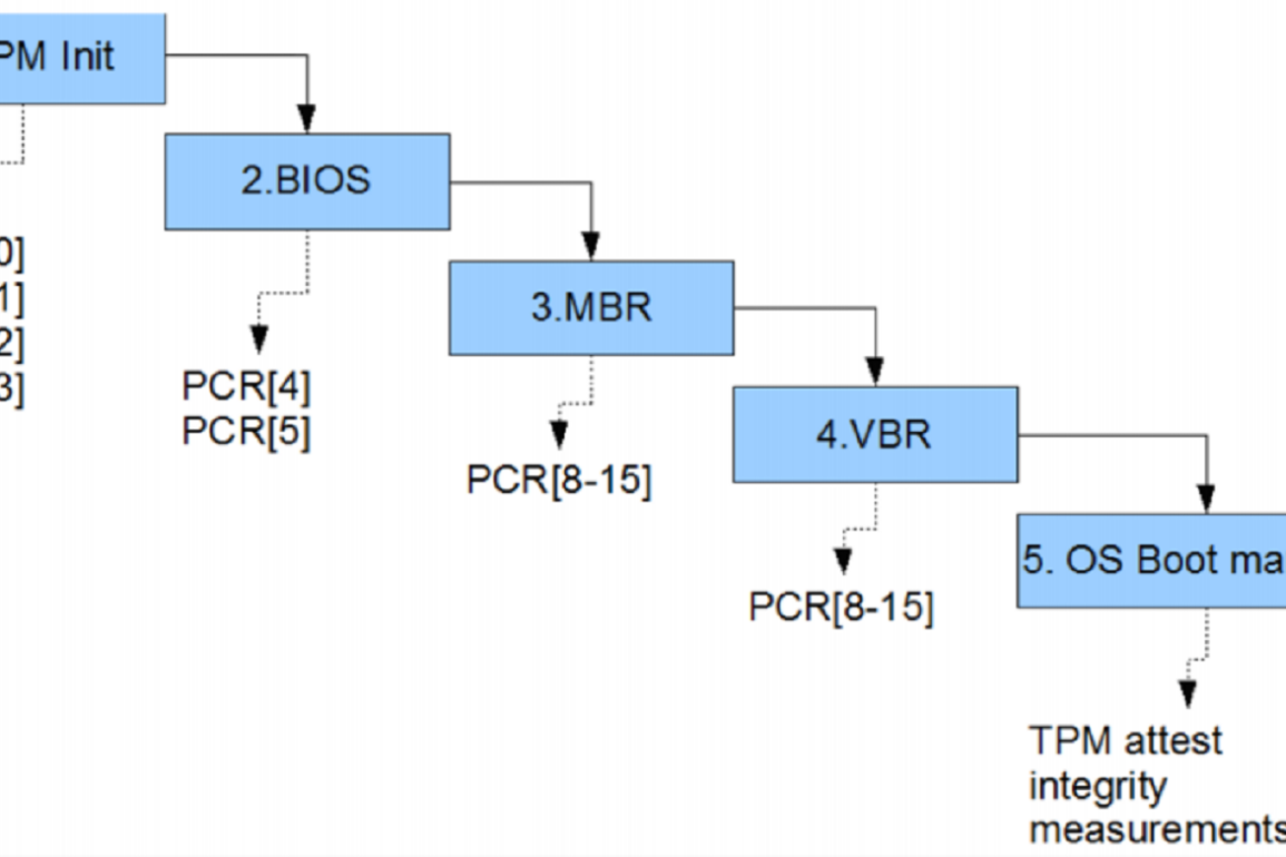 Questo processo di avvio misurato, quindi, consente di interrogare i registri del TPM al completamento del processo, e di verificare se i valori negli slot PCR corrispondono ai valori previsti, calcolatati con versioni verificate dei vari componenti del boot. Una cosa importante da notare è che il TPM, in realtà, non ha alcuna capacità di interferire direttamente con il processo di avvio. Se si tenta di avviare il codice modificato su un sistema, infatti, il TPM conterrà misurazioni diverse, ma l’avvio avrà comunque esito positivo.
