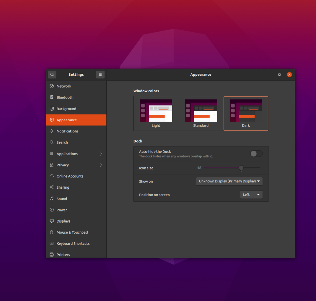 La Dark Mode è disponibile a partire da Ubuntu 20.04 Focal Fossa ed è accessibile dalla sezione Appearance. La procedura e gli screenshot che vi mostro sono presi dalla mia installazione di Ubuntu con GNOME. Cercate le impostazioni di sistema (Settings) e poi recatevi in Appearance. Su Focal Fossa o su Groovy Gorilla potrete scegliere tra tre temi differenti: