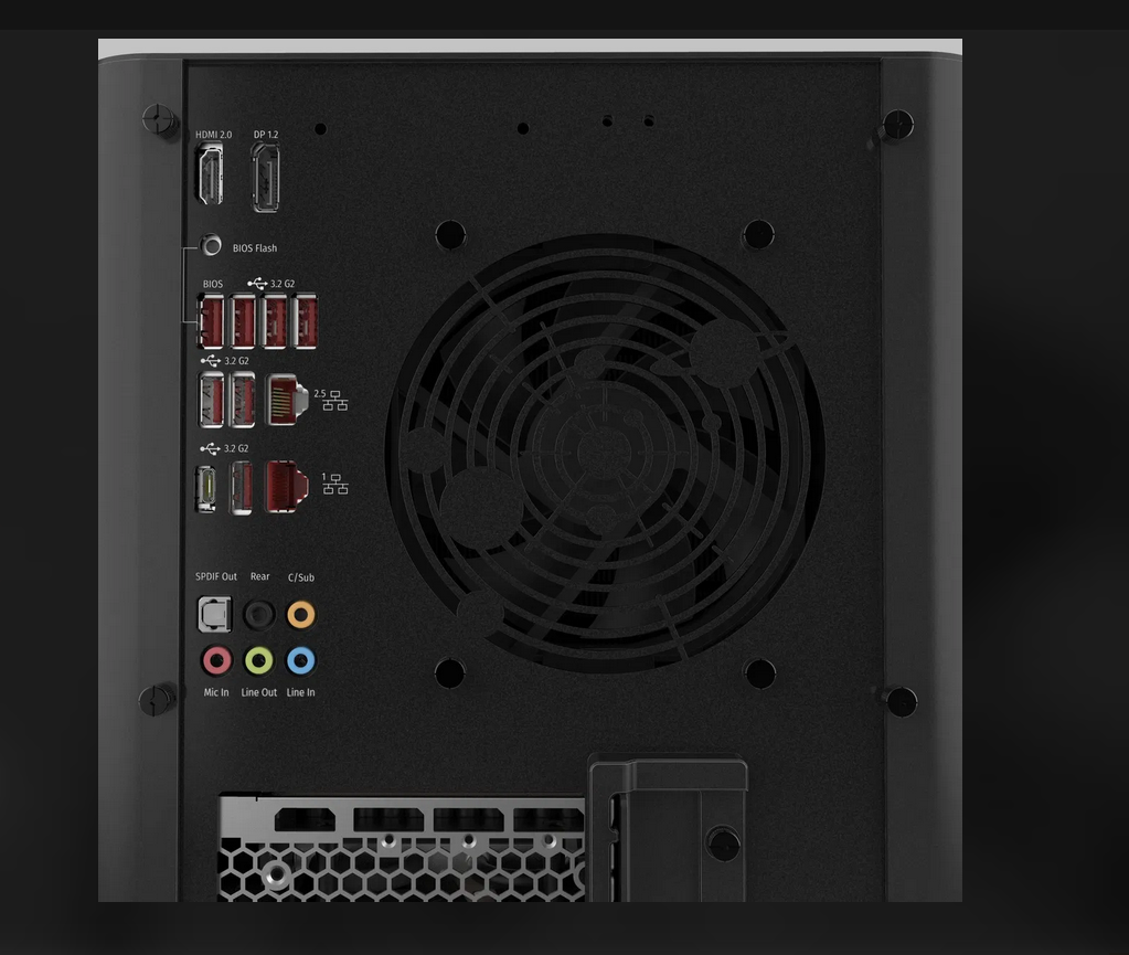 Di base troviamo un alimentatore da 650W, adatto per una configurazione intermedia, ma se cercate di più si può richiedere l’upgrade a 750W (+99$) o addirittura 1000W (+199$). Dal punto di vista delle porte non manca nulla: 1 × USB Type-C, 7 × USB 3.2 Gen 2, 1 × GbE RJ-45, 1 × 2.5G RJ-45, HDMI e DP 1.2. Presenti anche Wi-Fi 6 e Bluetooth 5.