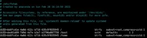 La compressione trasparente sarà abilitata di default in Fedora 34. Gli utenti di Fedora 33 che utilizzano BTRFS, tuttavia, possono sin da ora abilitare questa funzione nel proprio sistema. Il primo step consiste nel modificare il file /etc/fstab aggiungendo la variabile compress=zstd:1 subito dopo subvol=home come mostrato nel prossimo screenshot.