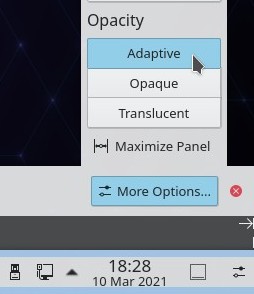 Quest’ultima opzione renderà il pannello opaco solo quando una finestra è a tutto schermo mentre diventerà automaticamente trasparente quando la finestra non sarà in full-size. La trasparenza adattiva del pannello rende Plasma più facile e piacevole da usare. Sono presenti anche miglioramenti visivi in una buona serie di tray applet, con gli sviluppatori di KDE che affermano che l’obiettivo è quello di fornire una buona coerenza nell’aspetto e nell’usabilità.