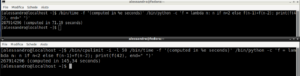 /bin/time -f '(computed in %e seconds)' /bin/python -c 'f = lambda n: n if n<2 else f(n-1)+f(n-2); print(f(42), end=" ")'