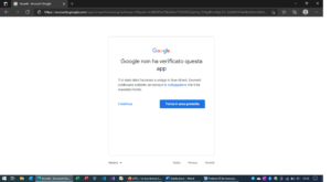 La prima volta che eseguite gphotos-sync vi verrà mostrato un link nel terminale come nel precedente screen. Incollate il collegamento nel browser. Vi apparirà un errore come nel successivo screenshot, continuate ed abilitate l’accesso. Incollate, infine, il codice fornito nel terminale alla richiesta del token di risposta.