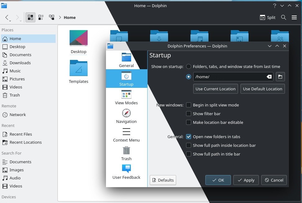 - Una nuova opzione nel file manager Dolphin che consente di mostrare i file nascosti prima delle cartelle