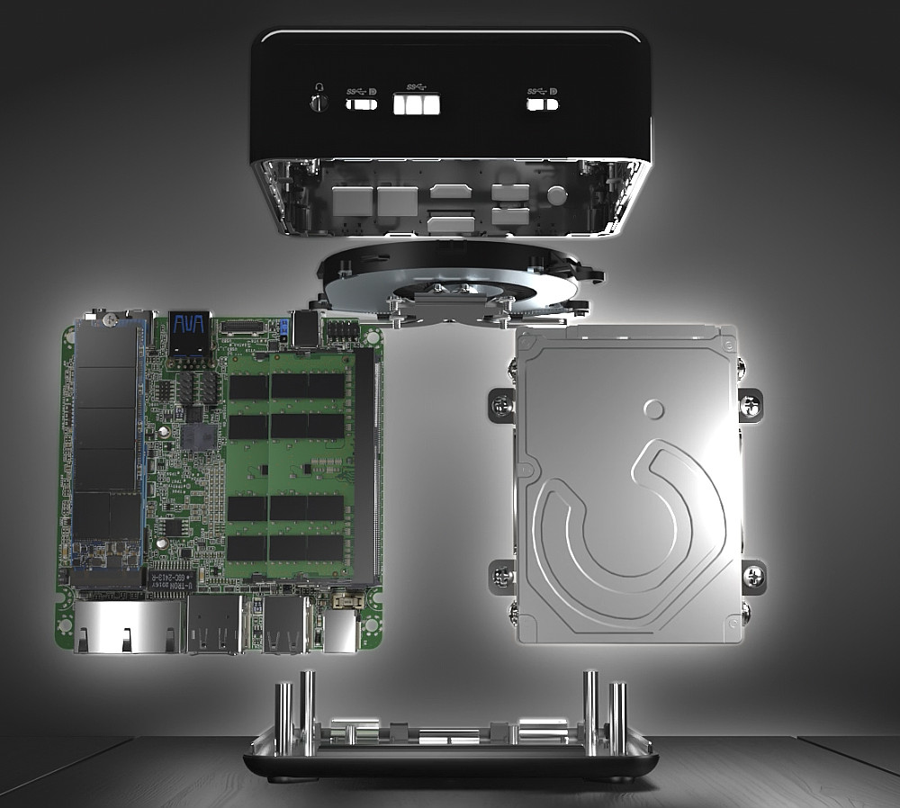 Interessante il design “a sandwich” che permette di rimuovere la piastra inferiore per accedere facilmente alla RAM e ai moduli di archiviazione per eventuali sostituzioni o upgrade.